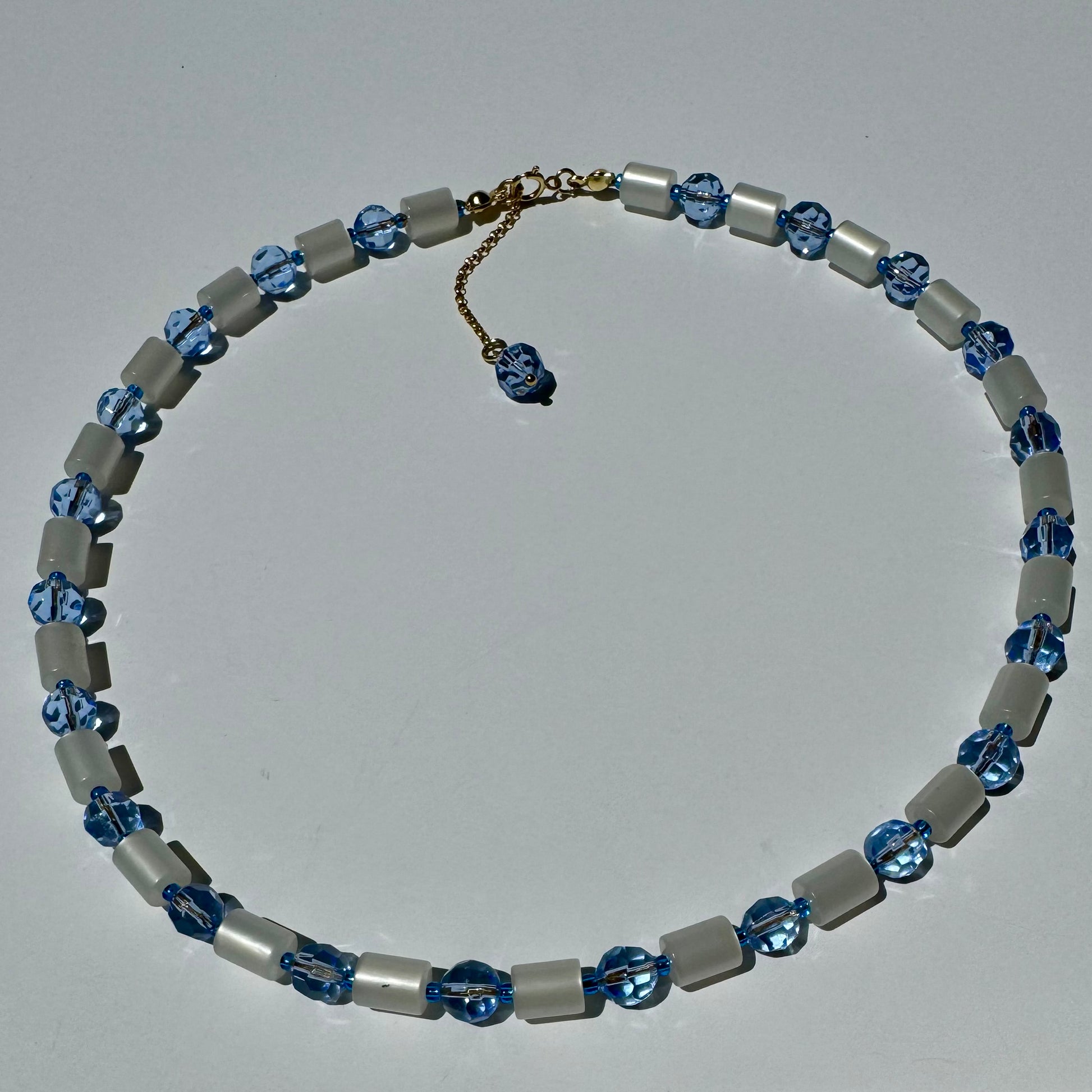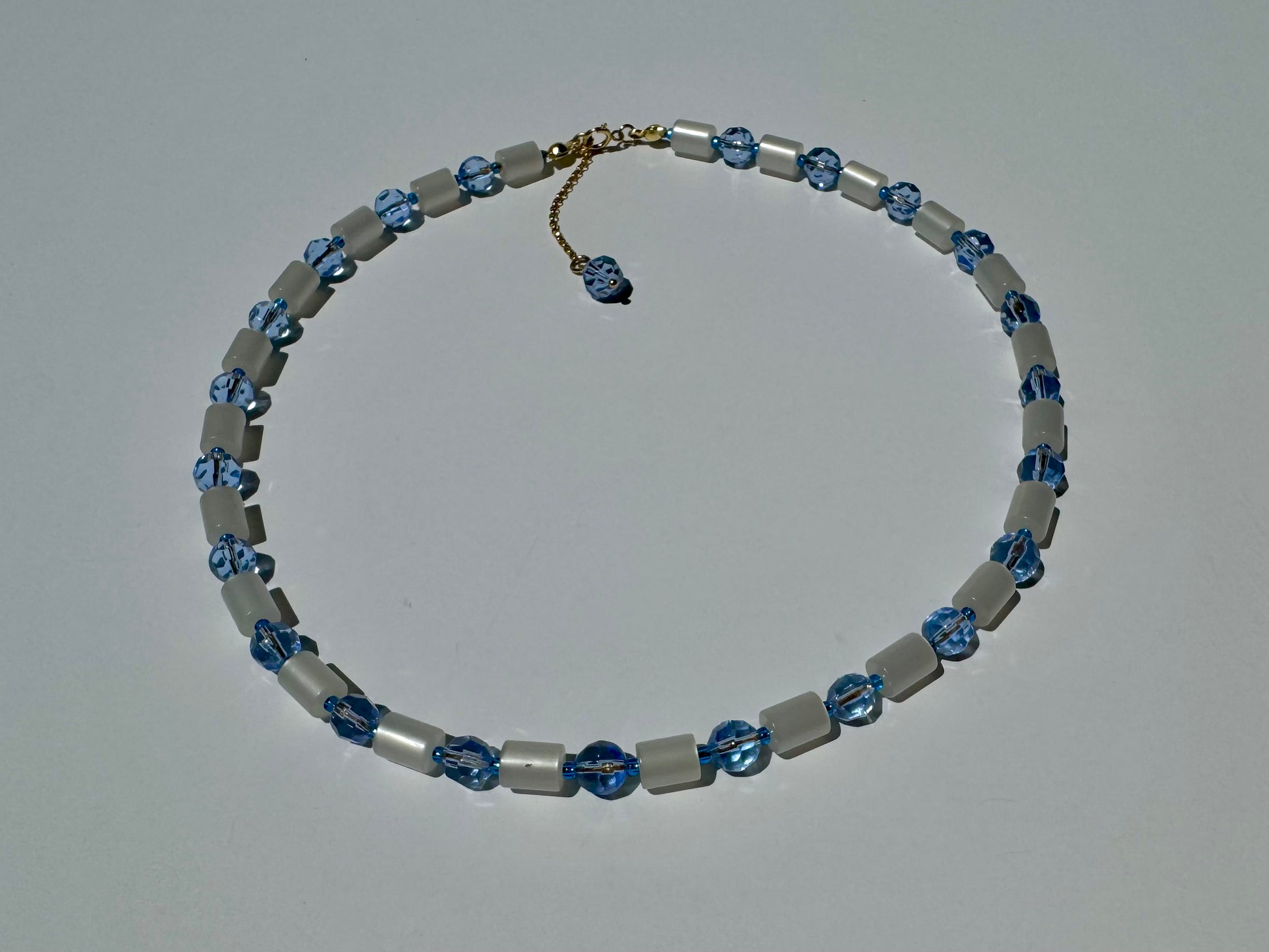 "Blue Moon" Upcycled Beaded Choker Necklace 14" (1/1)
