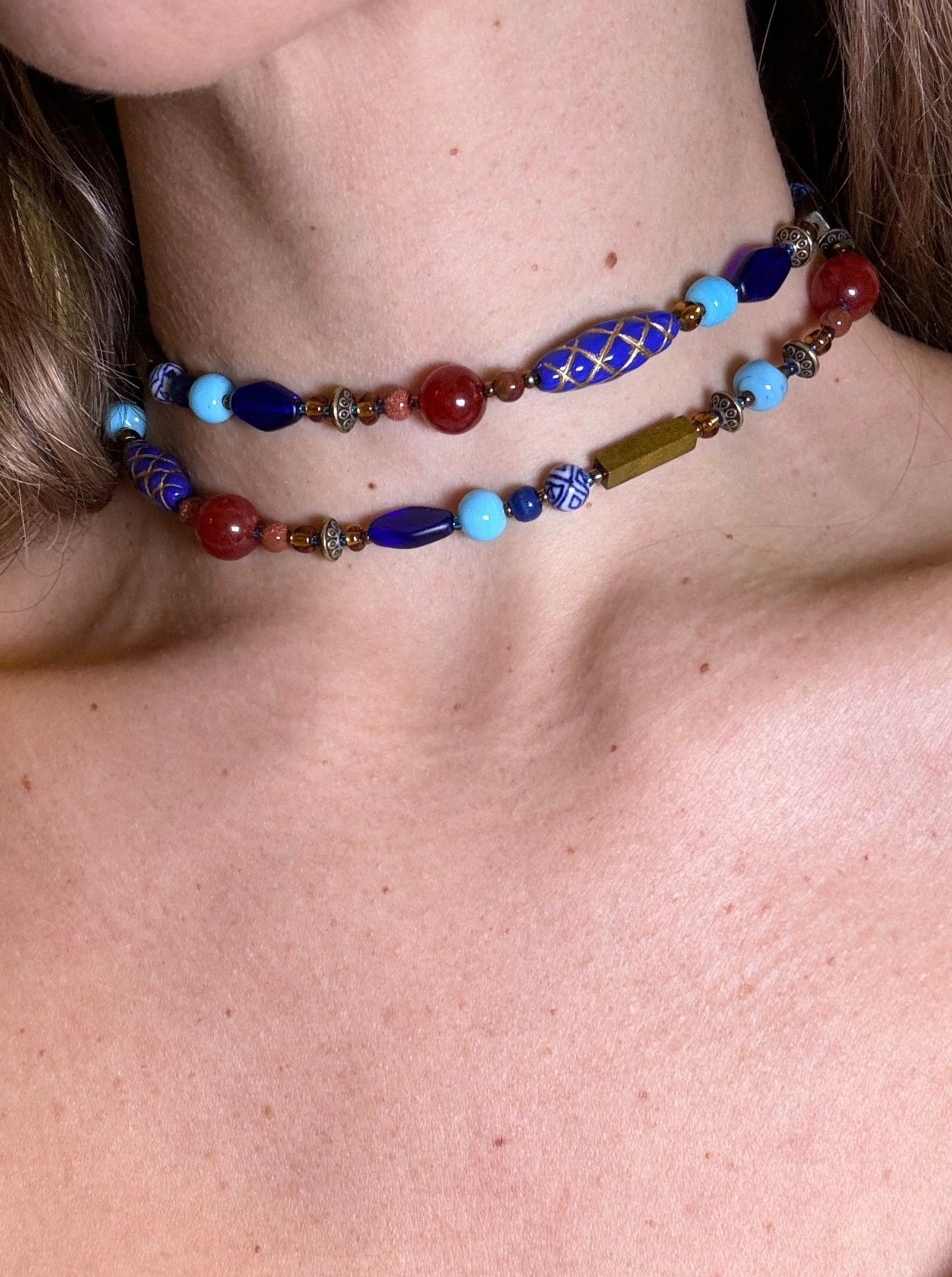 Designed and created by hand from beads and materials sourced from reclaimed jewelry, each Adaptable Accessory Chain is a one-of-a-kind work of art (just like you) and can be worn multiple ways to enhance any outfit, style, and occasion.