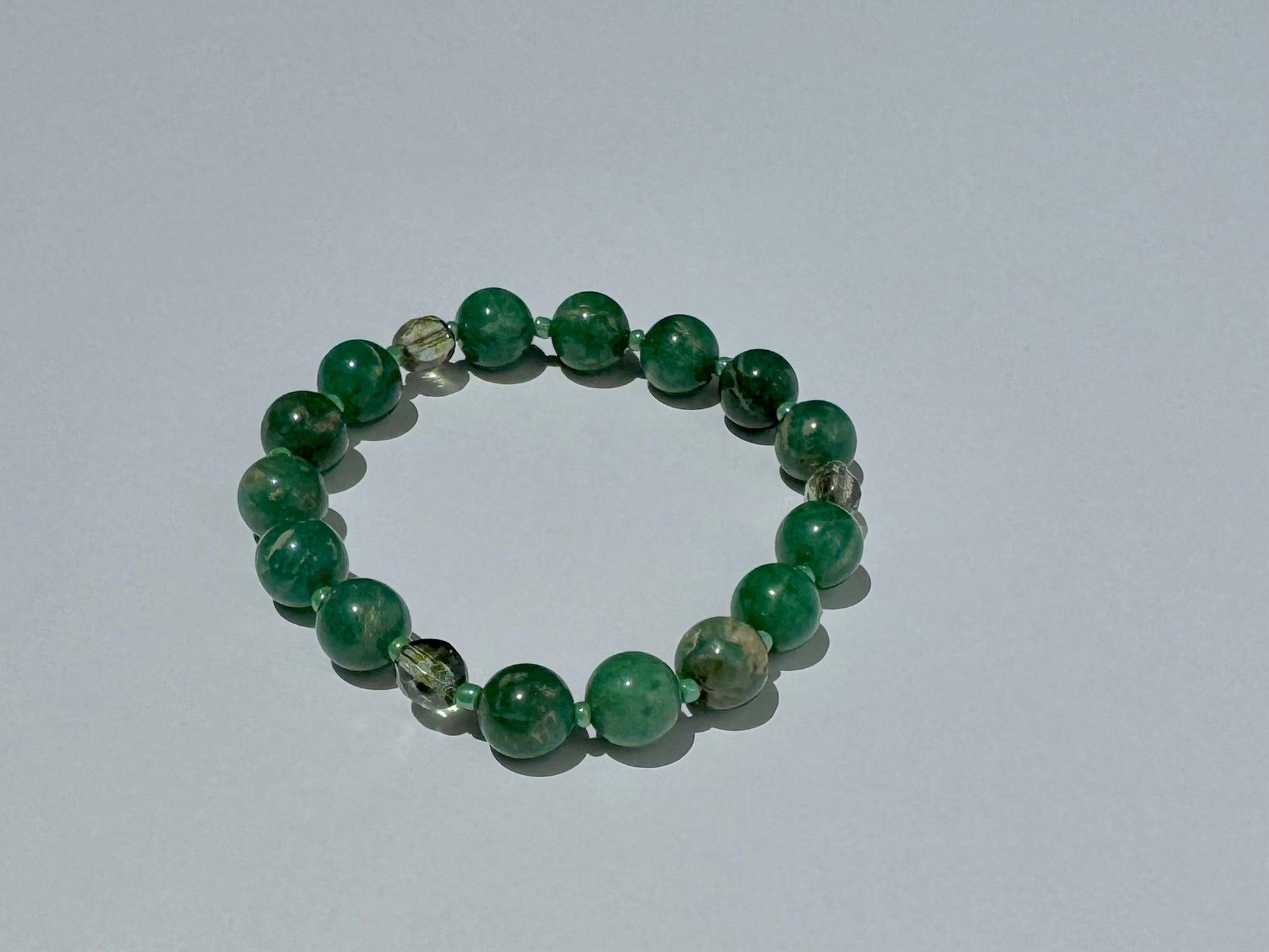 "Green Grass & High Tides" Upcycled Beaded Stretch Bracelet (1/1)