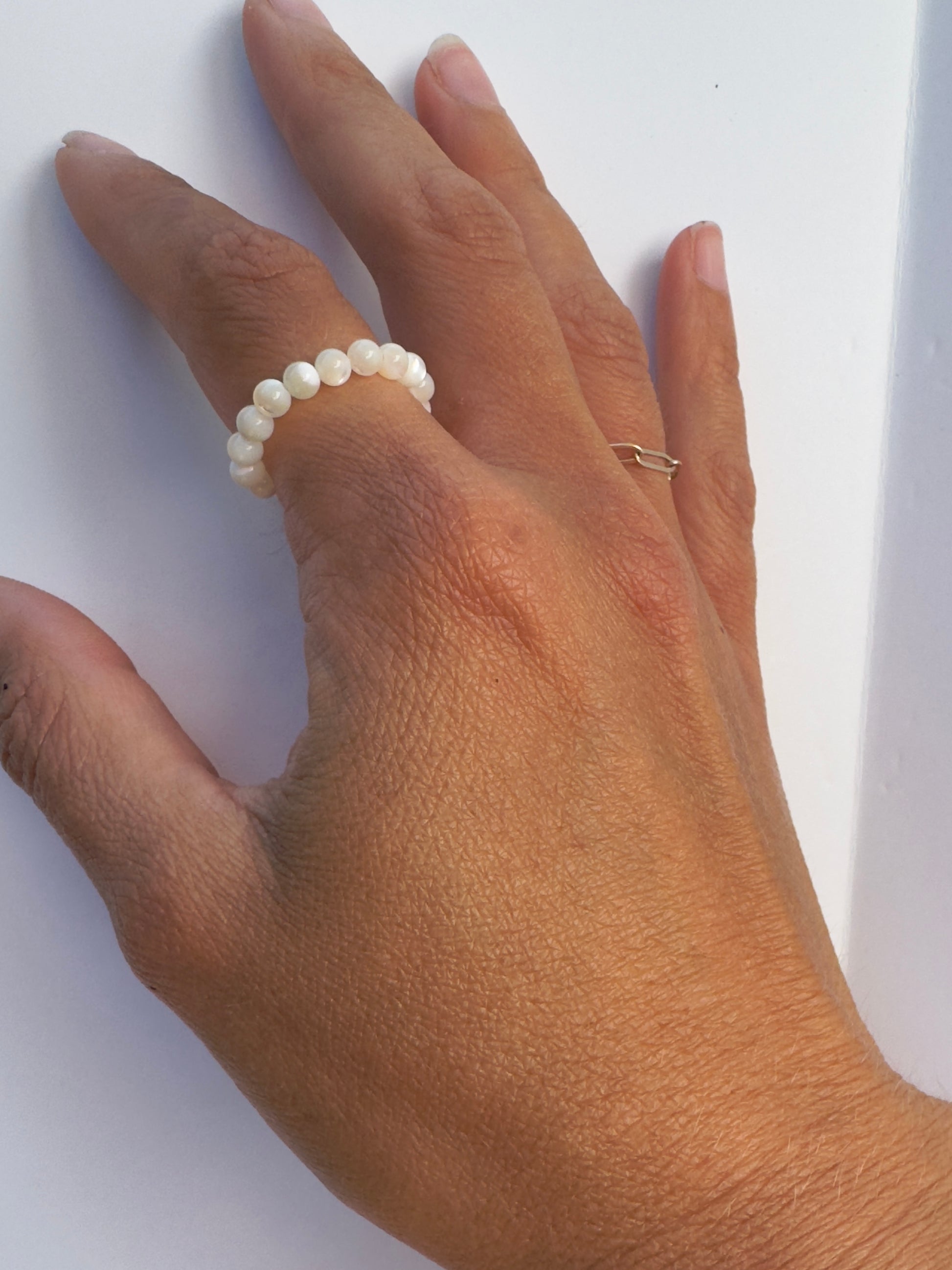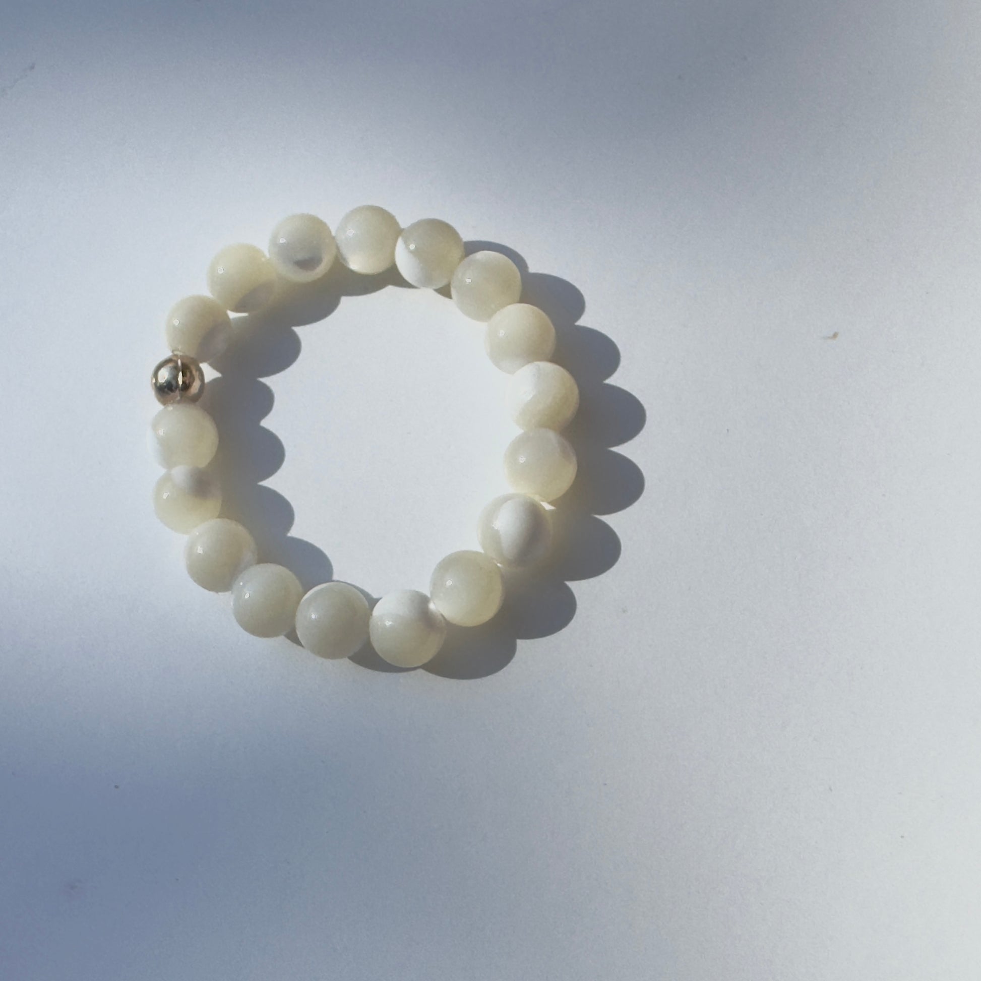 Mother of Pearl Round Beads onto stretch cord