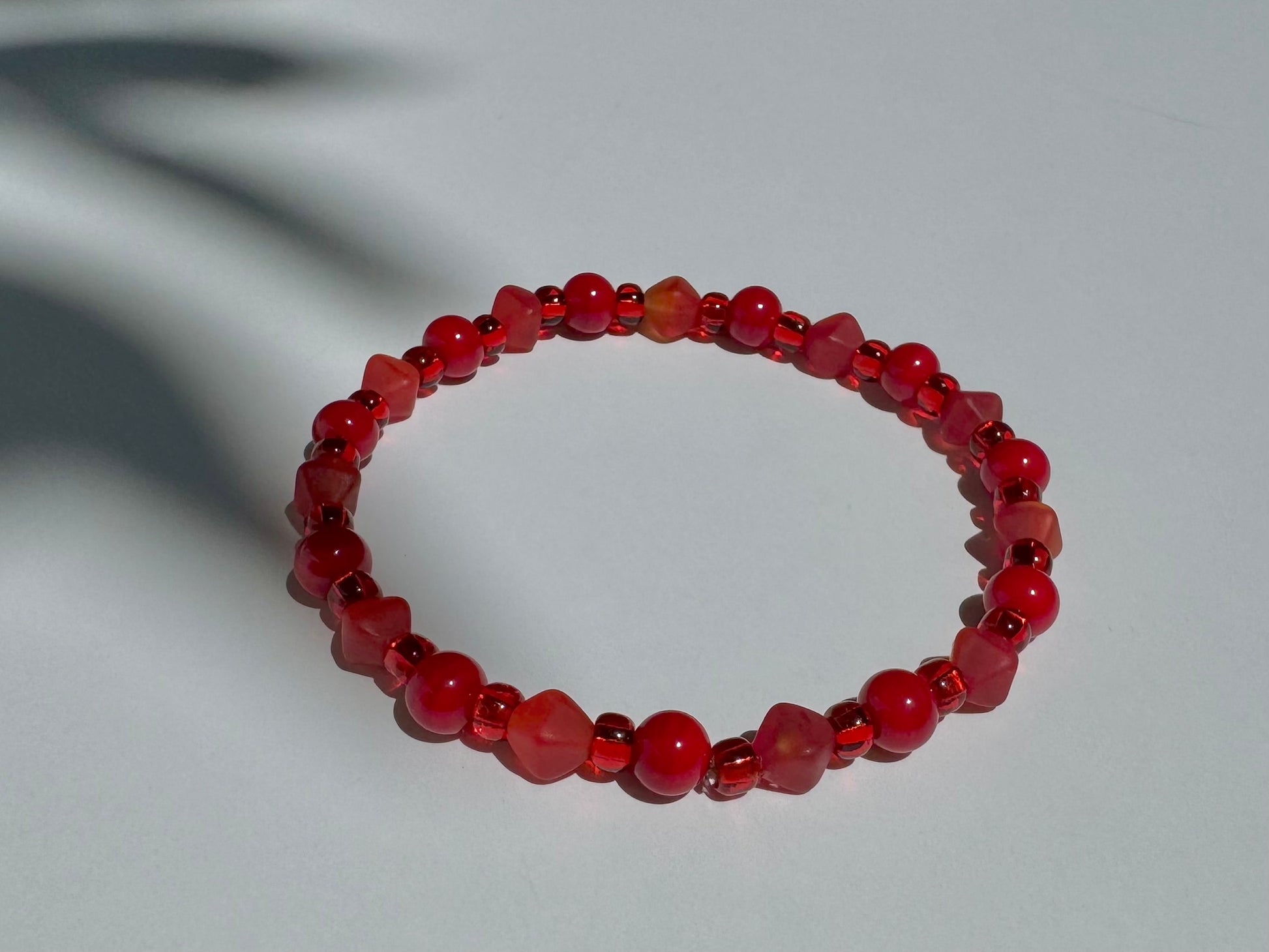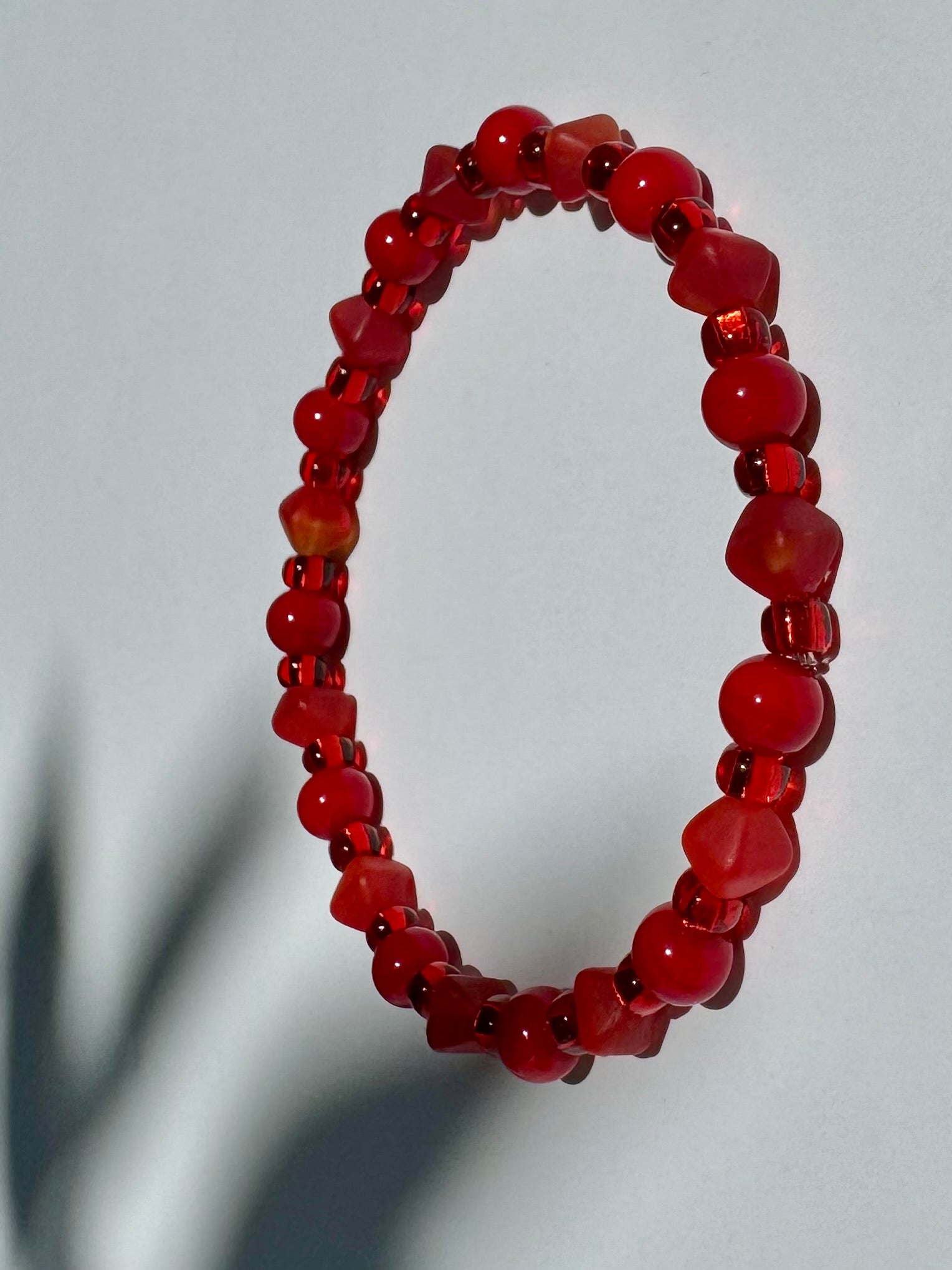 "Set My Heart On Fire" Upcycled Beaded Stretch Bracelet (1/1)