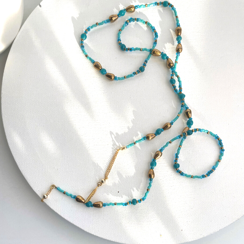 Designed and created by hand from beads and materials sourced from reclaimed jewelry, each Adaptable Accessory Chain is a one-of-a-kind work of art (just like you) and can be worn multiple ways to enhance any outfit, style, and occasion.