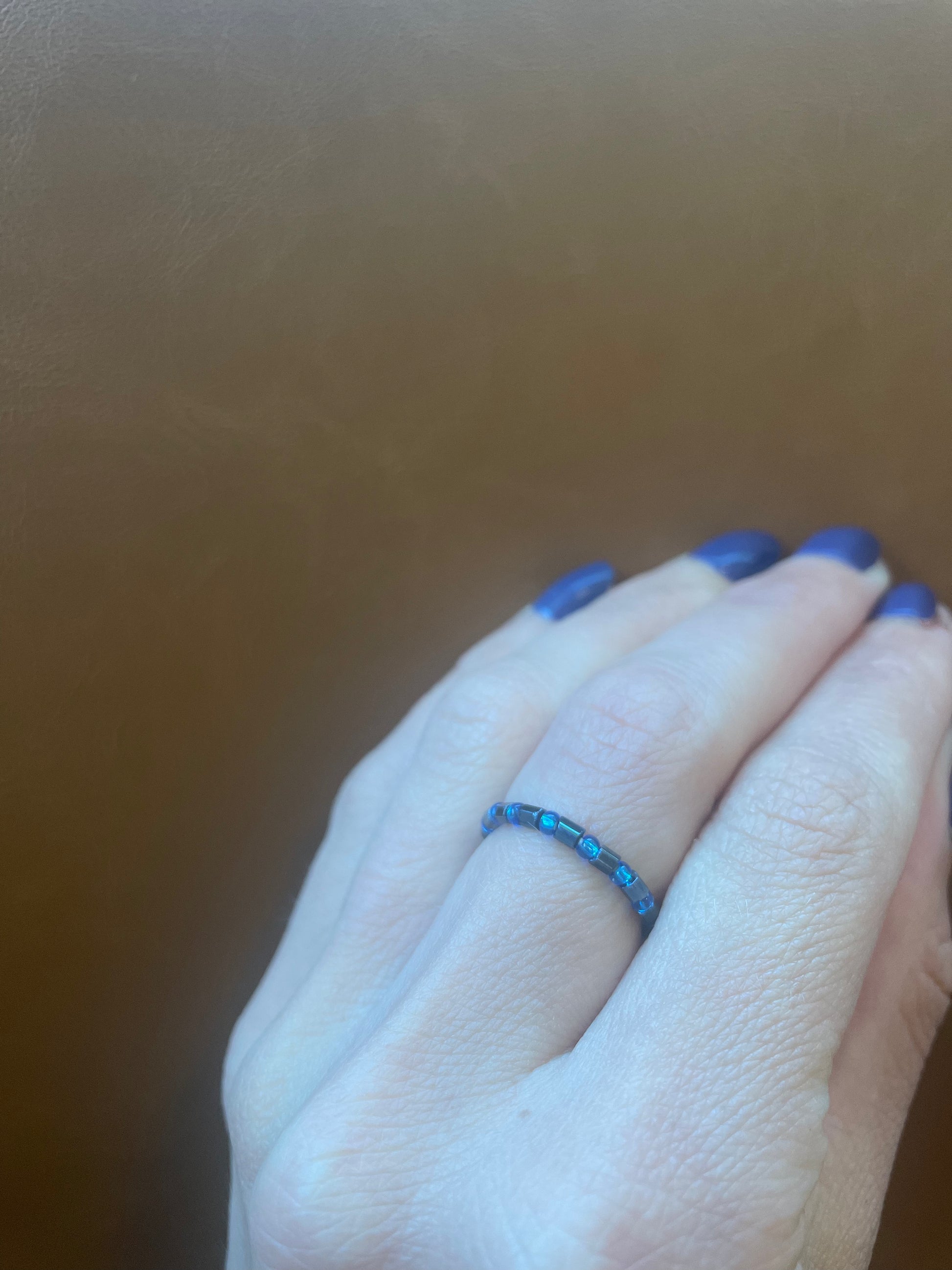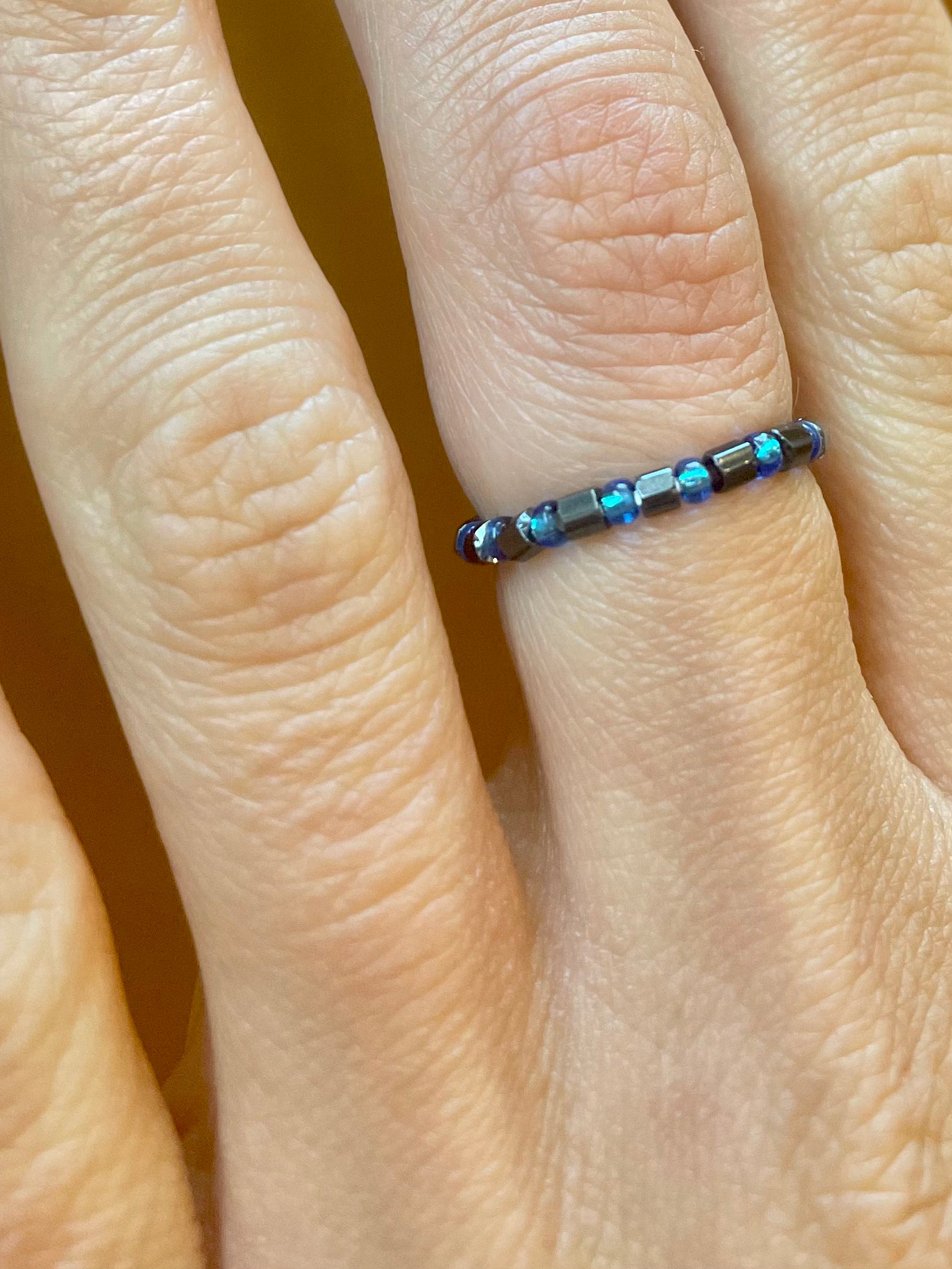 Adorn your fingers with a unique accessory – the one-of-a-kind Gimme Gimme Gimme Beaded Stretch Ring! Crafted from reclaimed jewelry beads, this stylish ring features an elastic cord for an adjustable fit. Wear it alone for a subtle detail or stack multiple rings for a bold statement – the possibilities are endless.