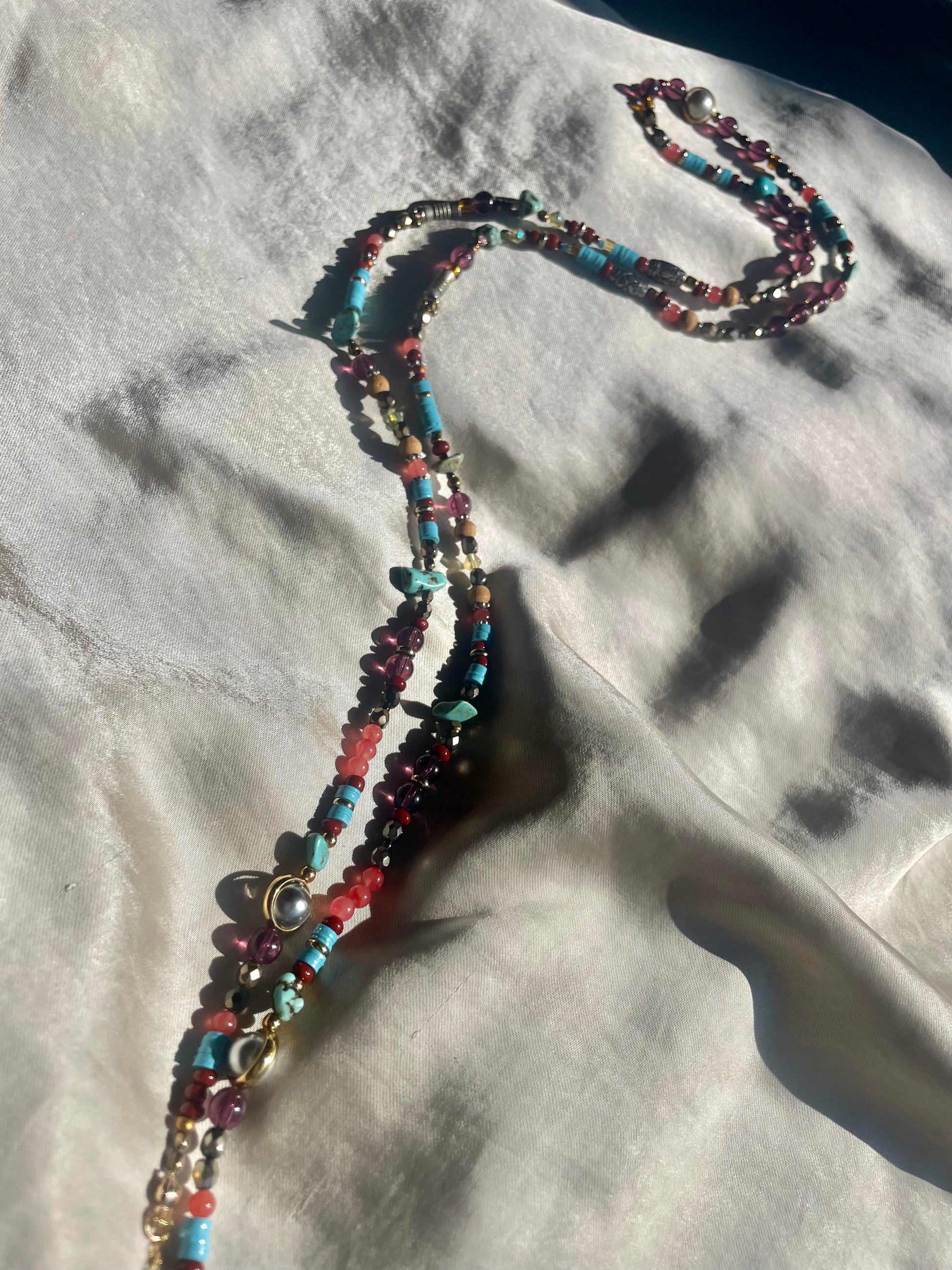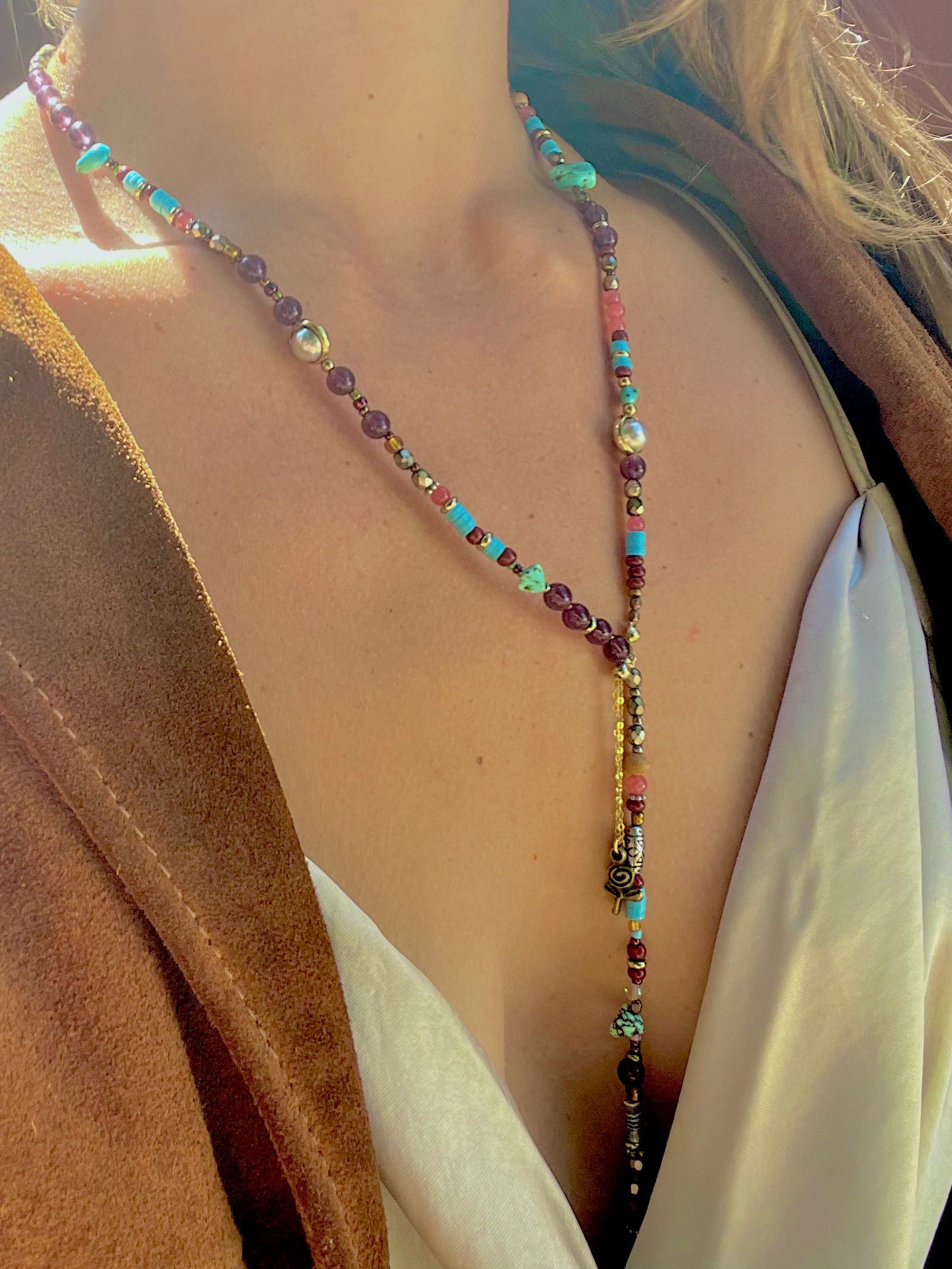 Wear it as a lariat necklace, layered choker necklace, wrap bracelet, sunglasses chain, body chain, or arm cuff. With its gold filled chain loops, you get to set the fit and style!