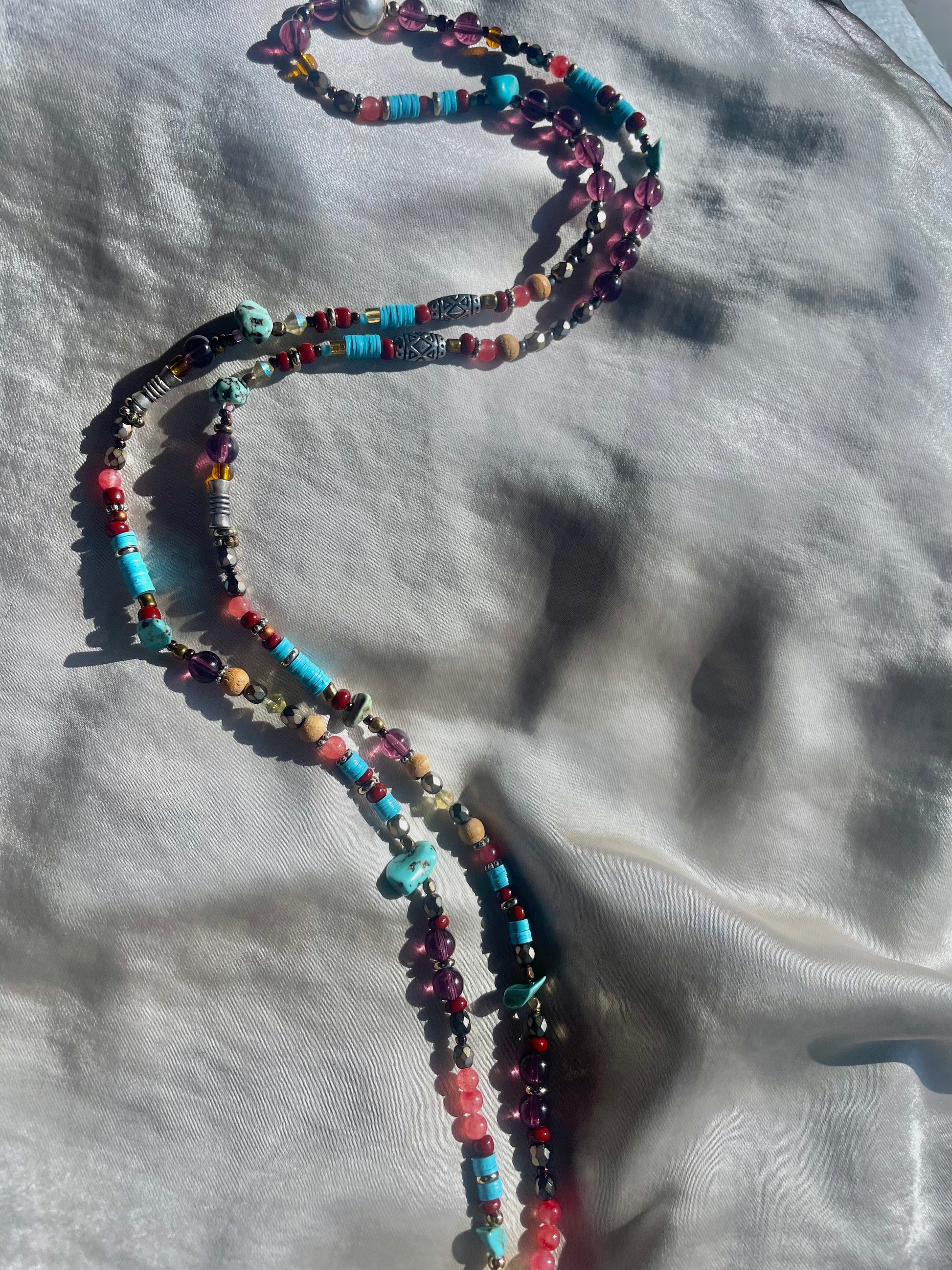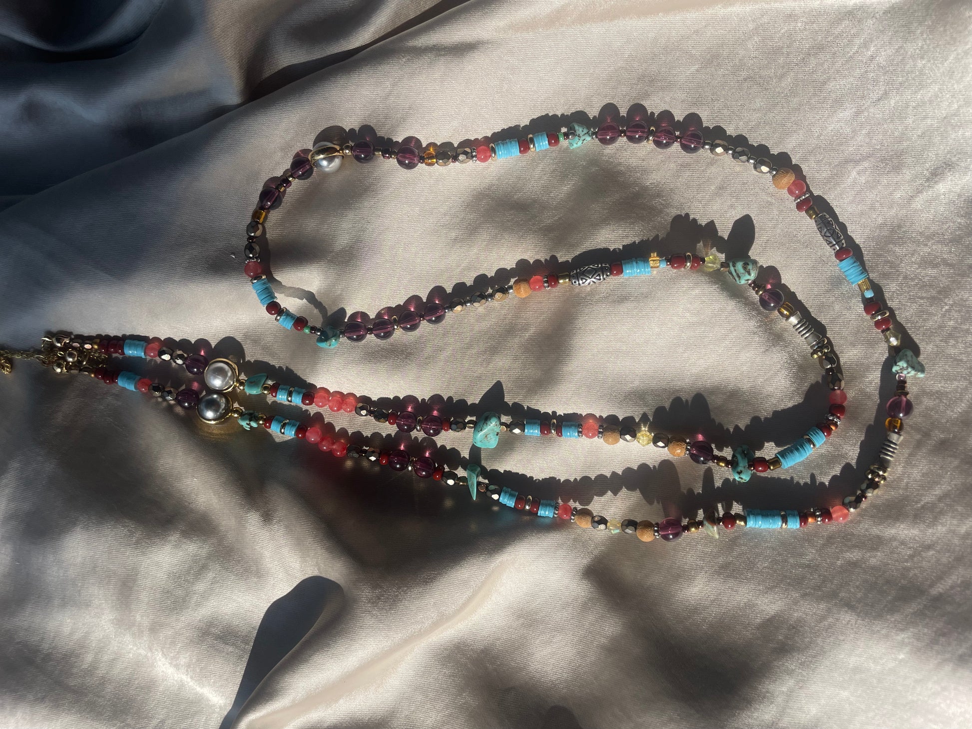 Designed and created by hand from beads and materials sourced from reclaimed jewelry, each Adaptable Accessory Chain is a one-of-a-kind work of art (just like you) and can be worn multiple ways to enhance any outfit, style, and occasion.