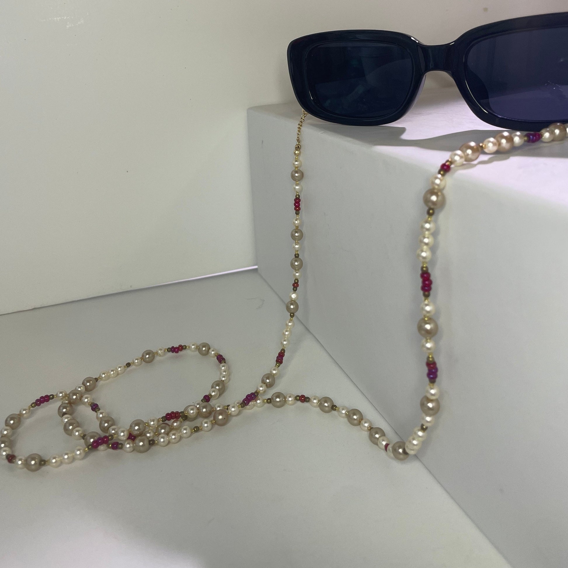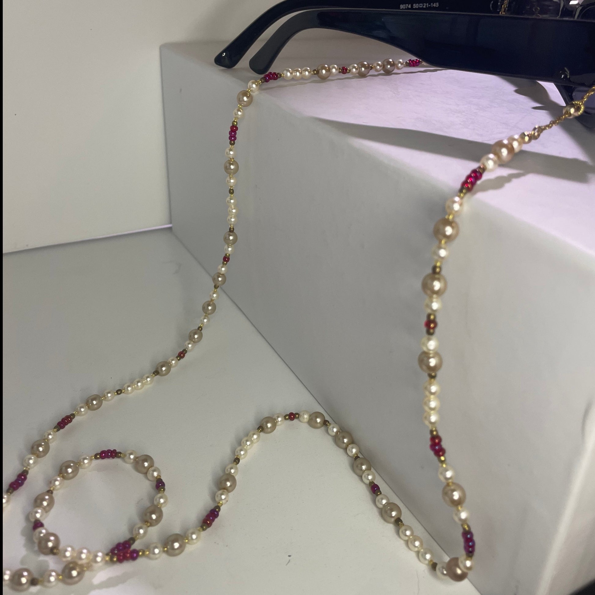 At each ends of the beaded chain are the uniquely designed adjustable gold loops. These are constructed to conveniently fit the particular size arms of your glasses, while giving your look a more polished and decorative feel. The adjustable loops are made with gold filled chain that is pulled through a slider bead lined with silicone on the inside for a smooth glide.
