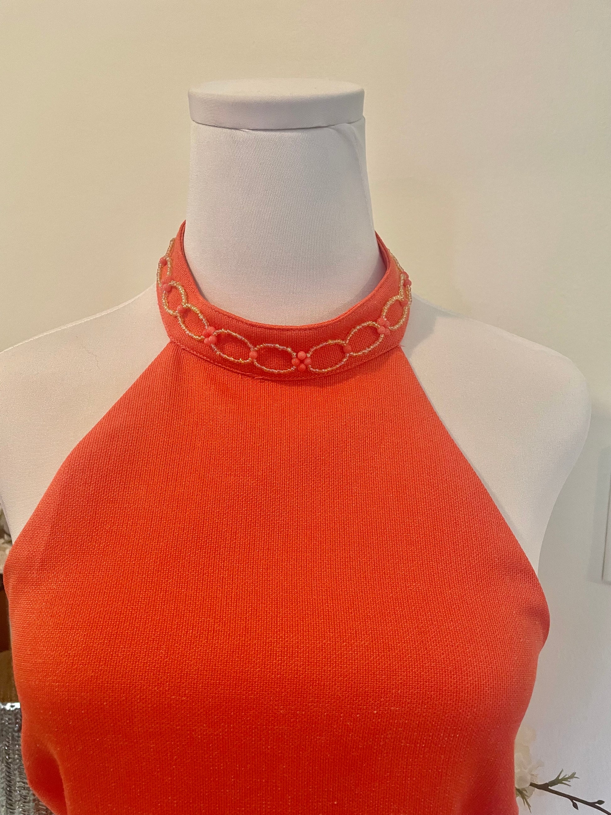 "Never Been to Spain" Beadazzled High Neck Mini Dress