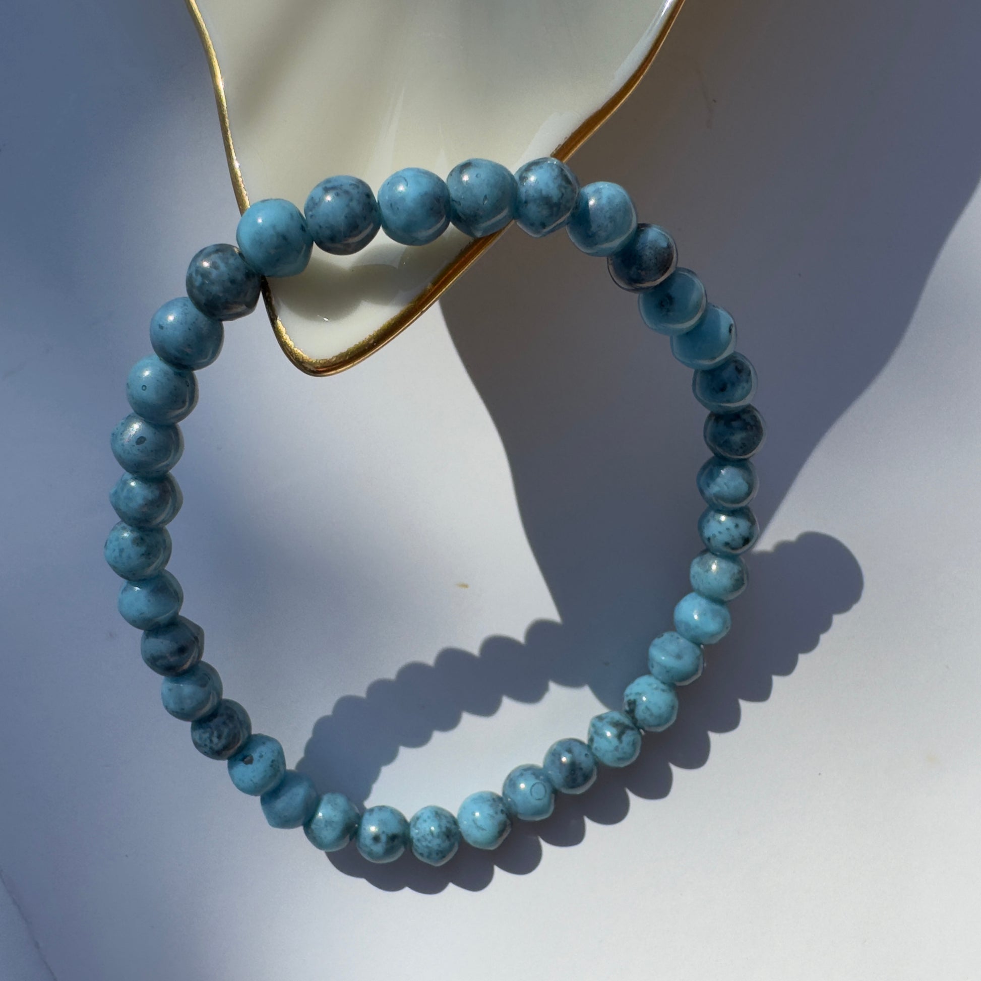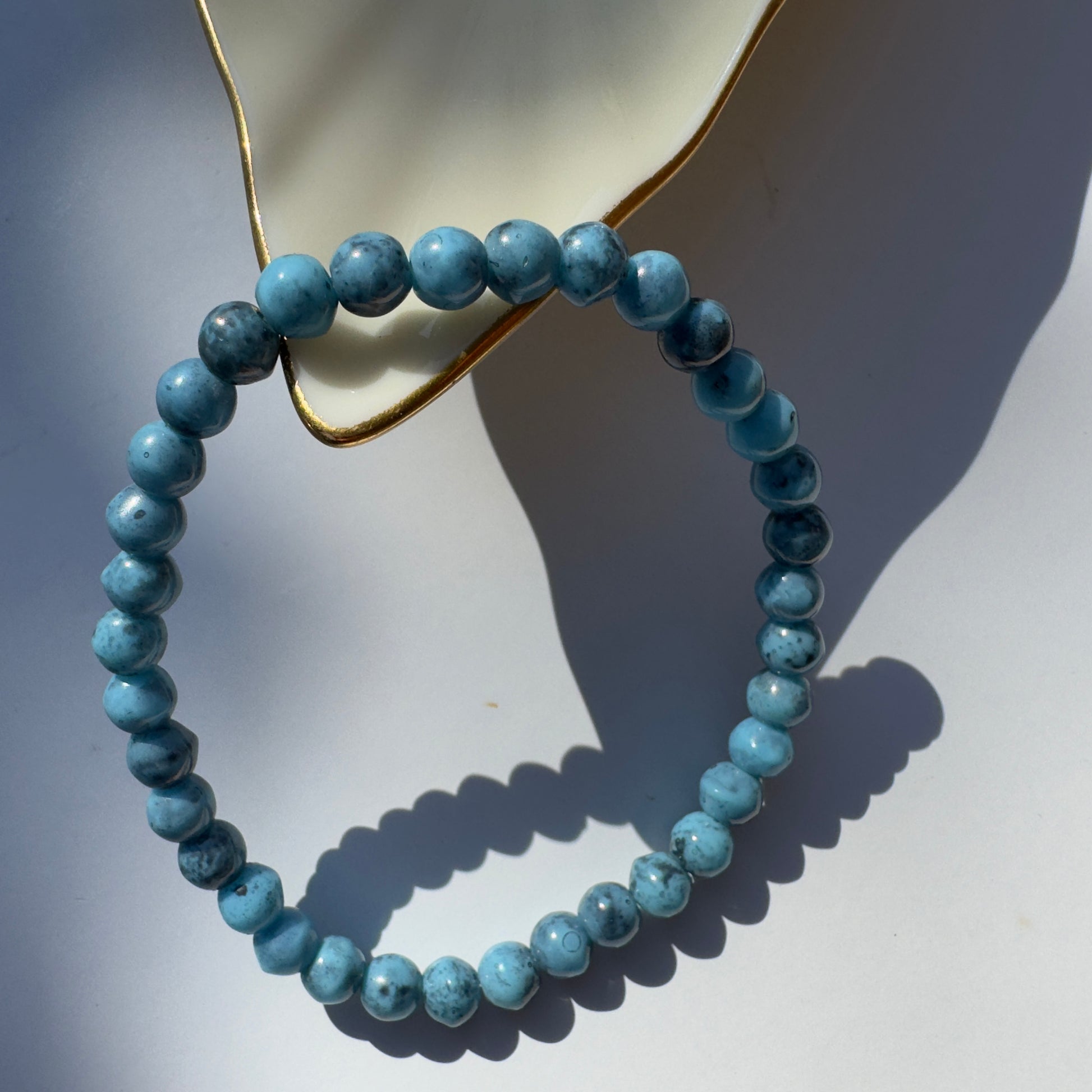 Upcycled with Larimer Quartz round beads on stretch cord.