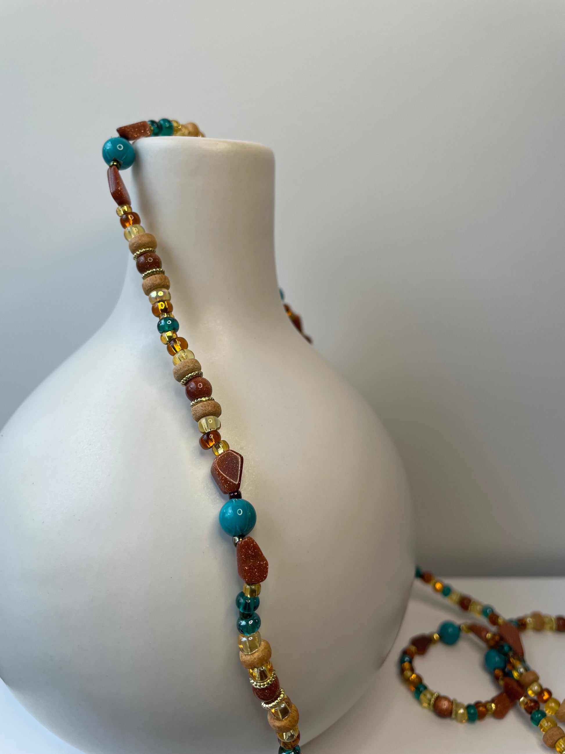 Designed and created by hand from beads and materials sourced from reclaimed jewelry, each Adaptable Accessory Chain is a one-of-a-kind work of art (just like you) and can be worn multiple ways to enhance any outfit, style, and occasion.