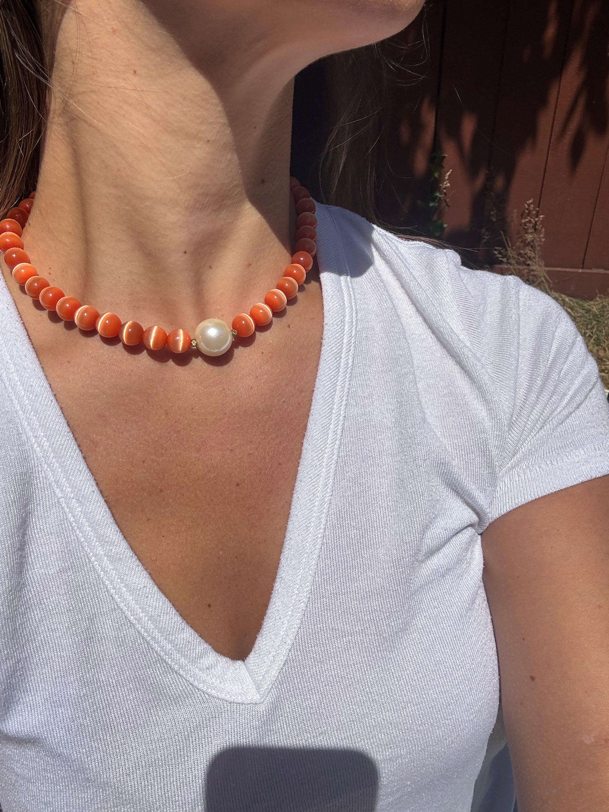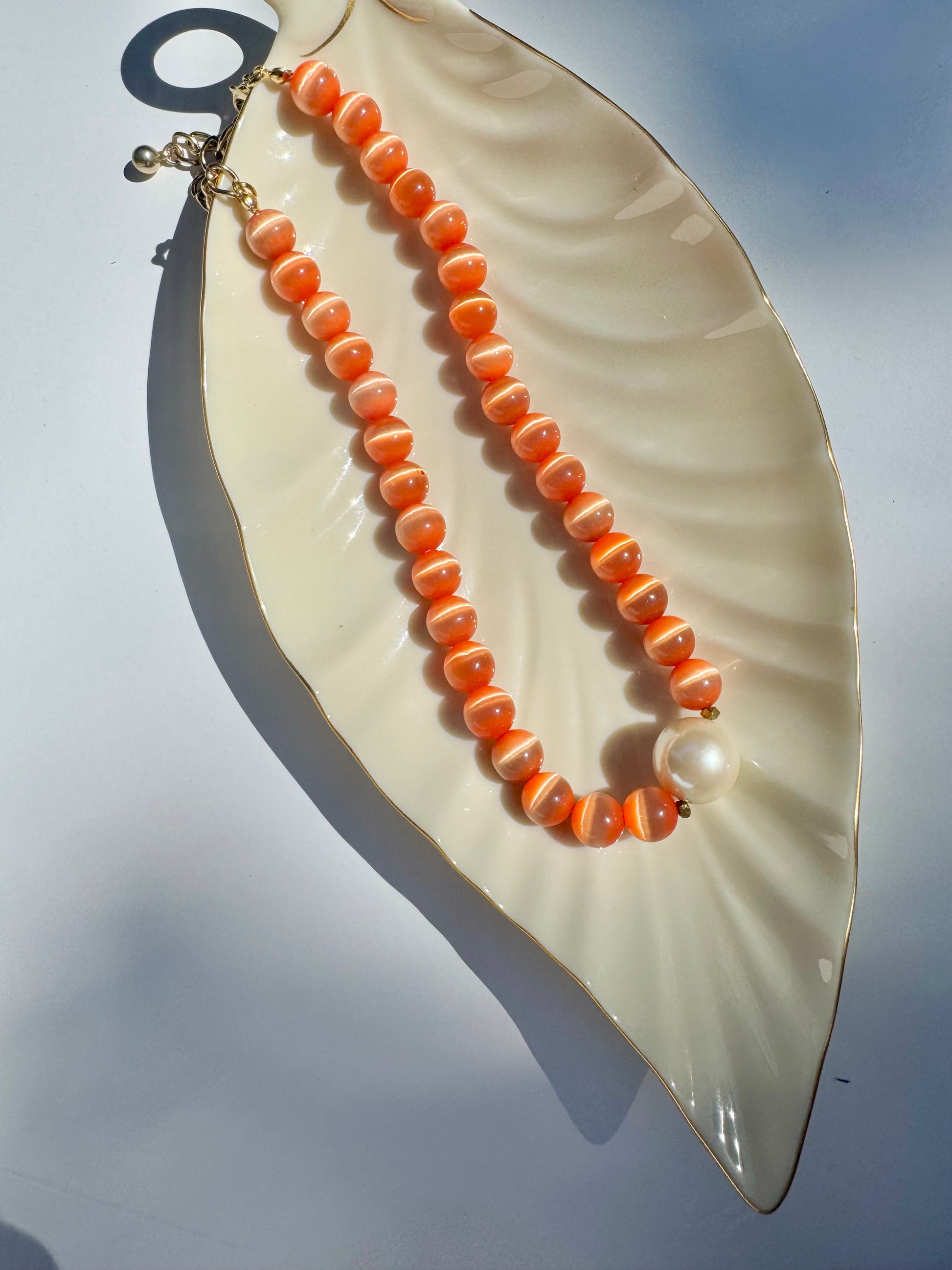 "Orange Moon" Upcycled Beaded Choker Necklace