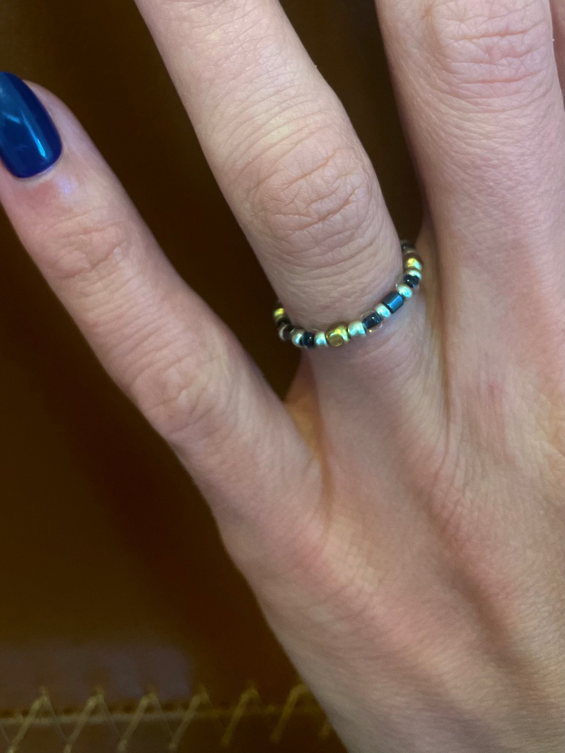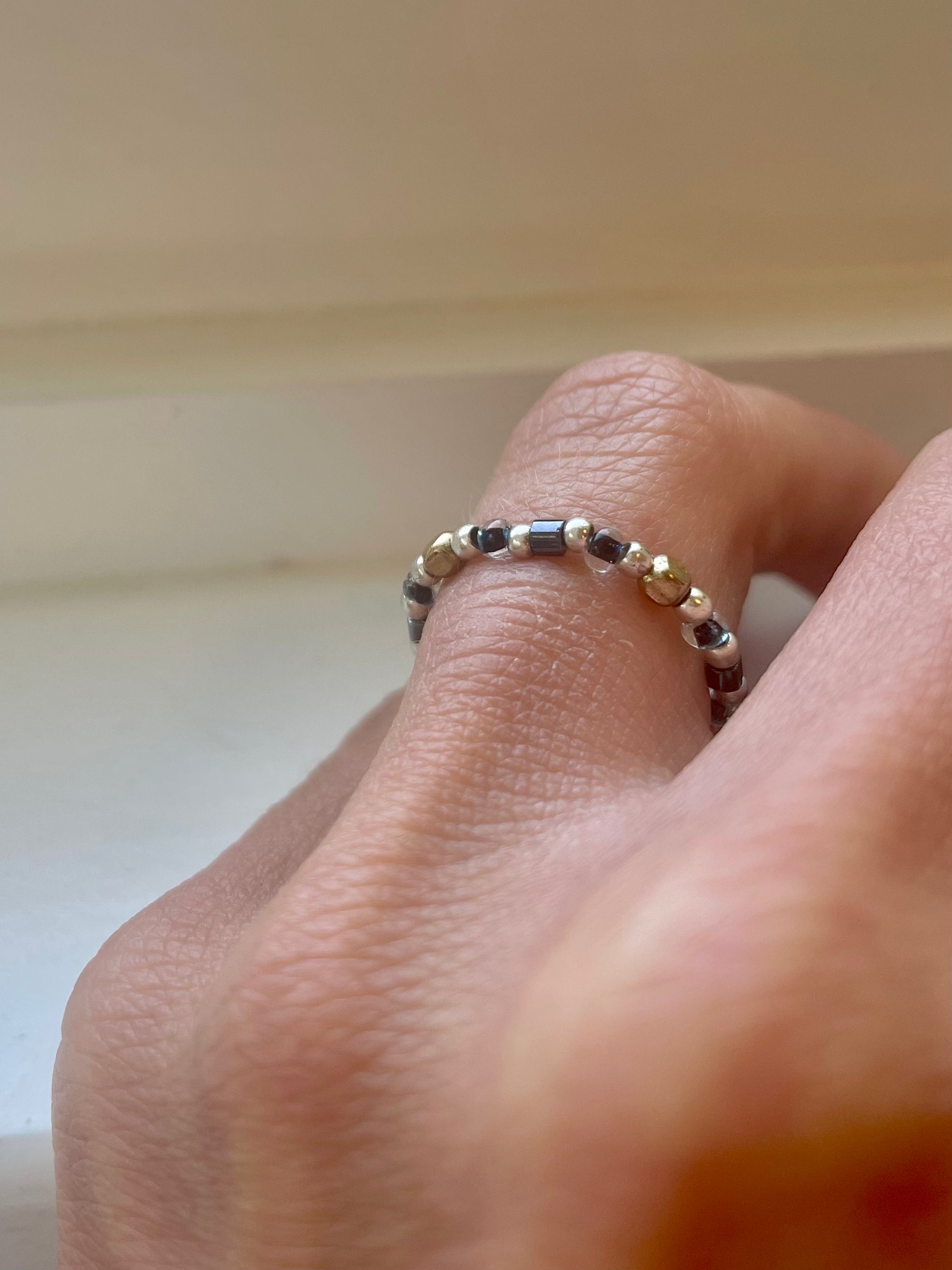 Discover our unique Last Summer Beaded Stretch Ring, crafted from beads of reclaimed jewelry for one-of-a-kind style. With its flexible fit, you can wear it alone or stack multiple beaded rings together for an unforgettable look. Enhance your style with the Our Last Summer Beaded Stretch Ring.