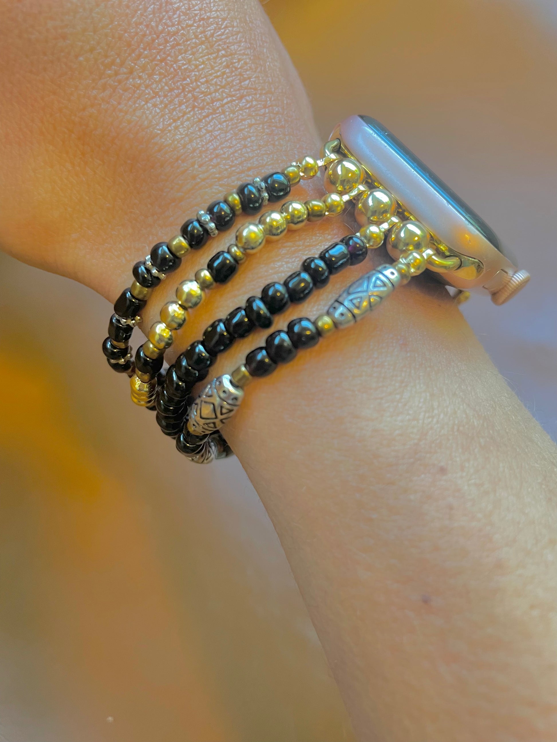 Be bold with one-of-a-kind Apple Watch style in the Over and Over Beaded Apple Watch Band. Upcycled from thrifted beaded jewelry, this handcrafted 4-layer watch band adds a funky and vibrant touch to your wrist. And thanks to its elasticized design, it's easy to take on and off and provides a secure fit with each wear, making it a true convenience! Make a statement and stand out while still being able to utilize your device.