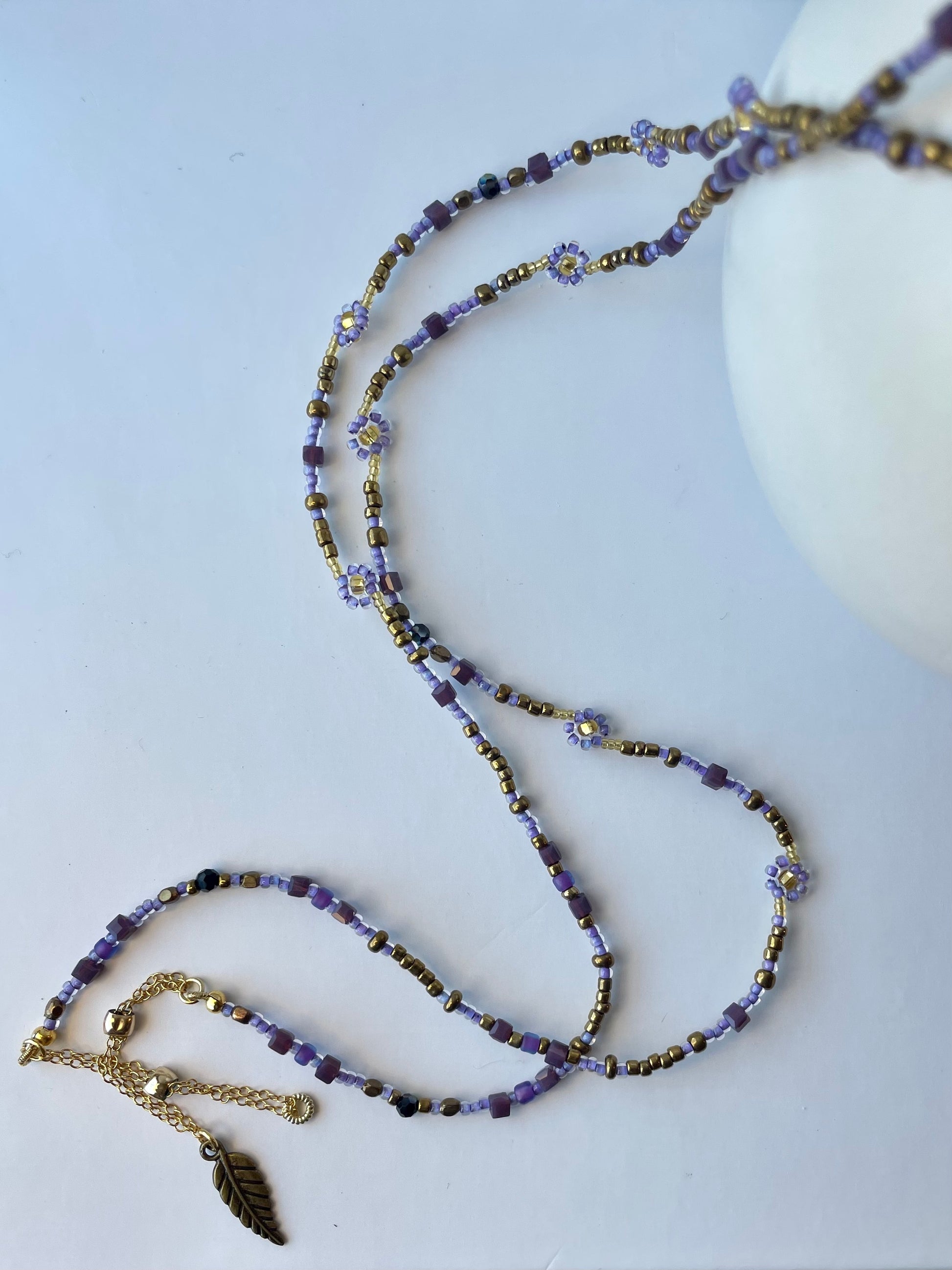At each ends of the beaded chain are the uniquely designed adjustable gold loops. These are constructed to conveniently fit the particular size arms of your glasses, while giving your look a more polished and decorative feel. The adjustable loops are made with gold filled chain that is pulled through a sterling silver slider bead lined with silicone on the inside for a smooth glide.