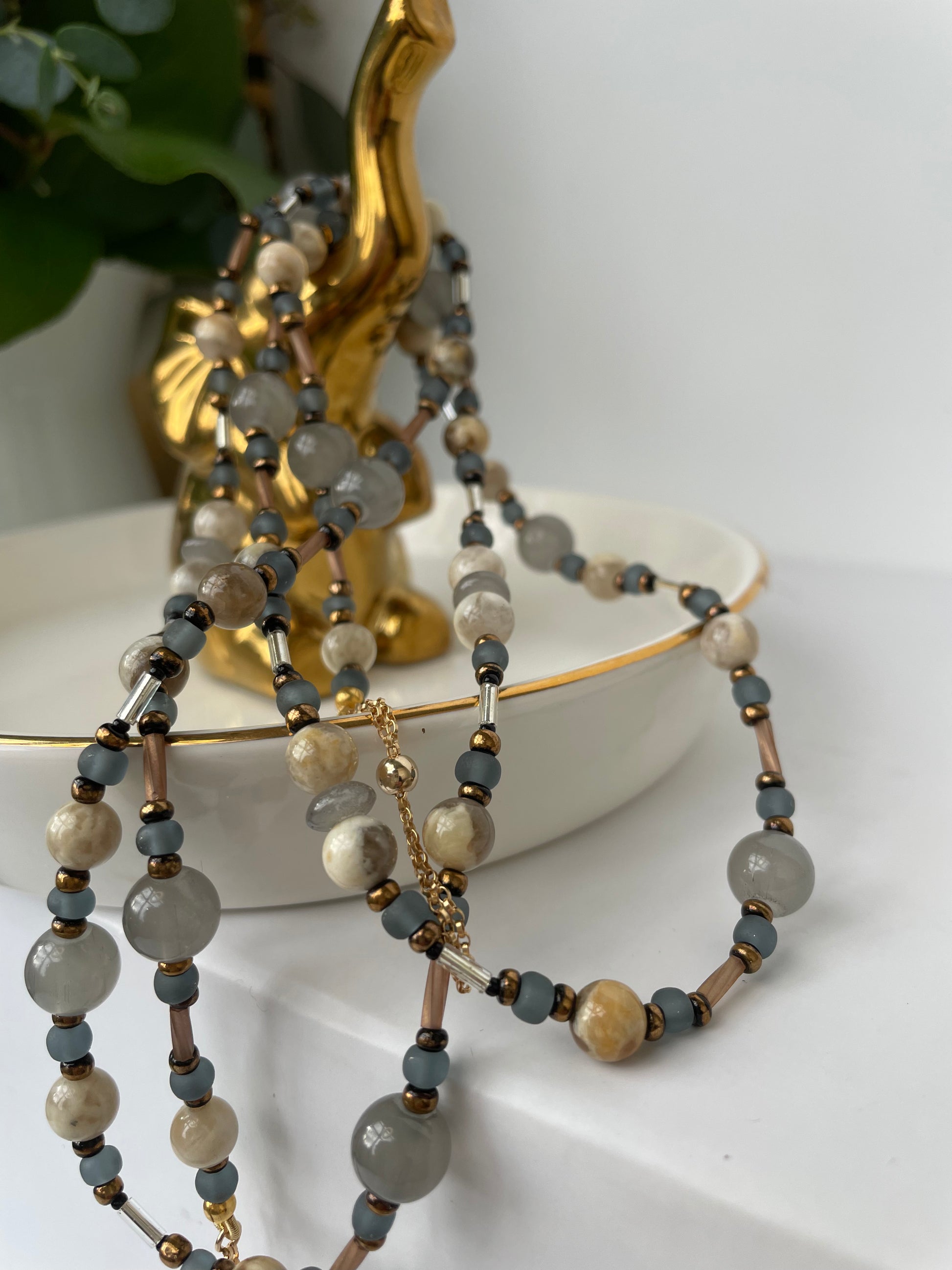 At each ends of the beaded chain are the uniquely designed adjustable gold loops. These are constructed to conveniently fit the particular size arms of your glasses, while giving your look a more polished and decorative feel. The adjustable loops are made with gold filled chain that is pulled through a gold plated slider bead lined with silicone on the inside for a smooth glide.