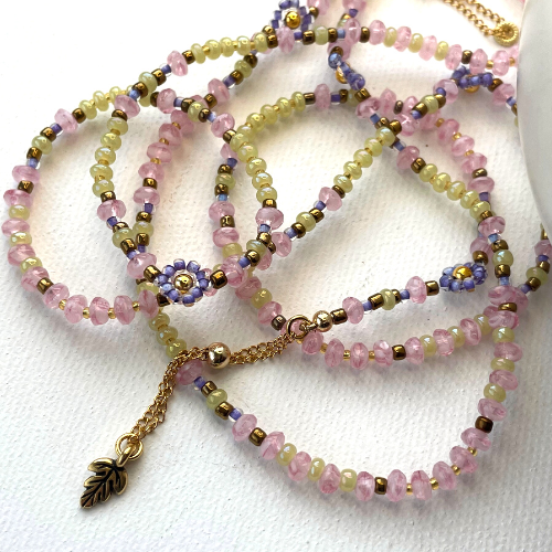 At each ends of the beaded chain are the uniquely designed adjustable gold loops. These are constructed to conveniently fit the particular size arms of your glasses, while giving your look a more polished and decorative feel. The adjustable loops are made with gold filled chain that is pulled through a sterling silver slider bead lined with silicone on the inside for a smooth glide.