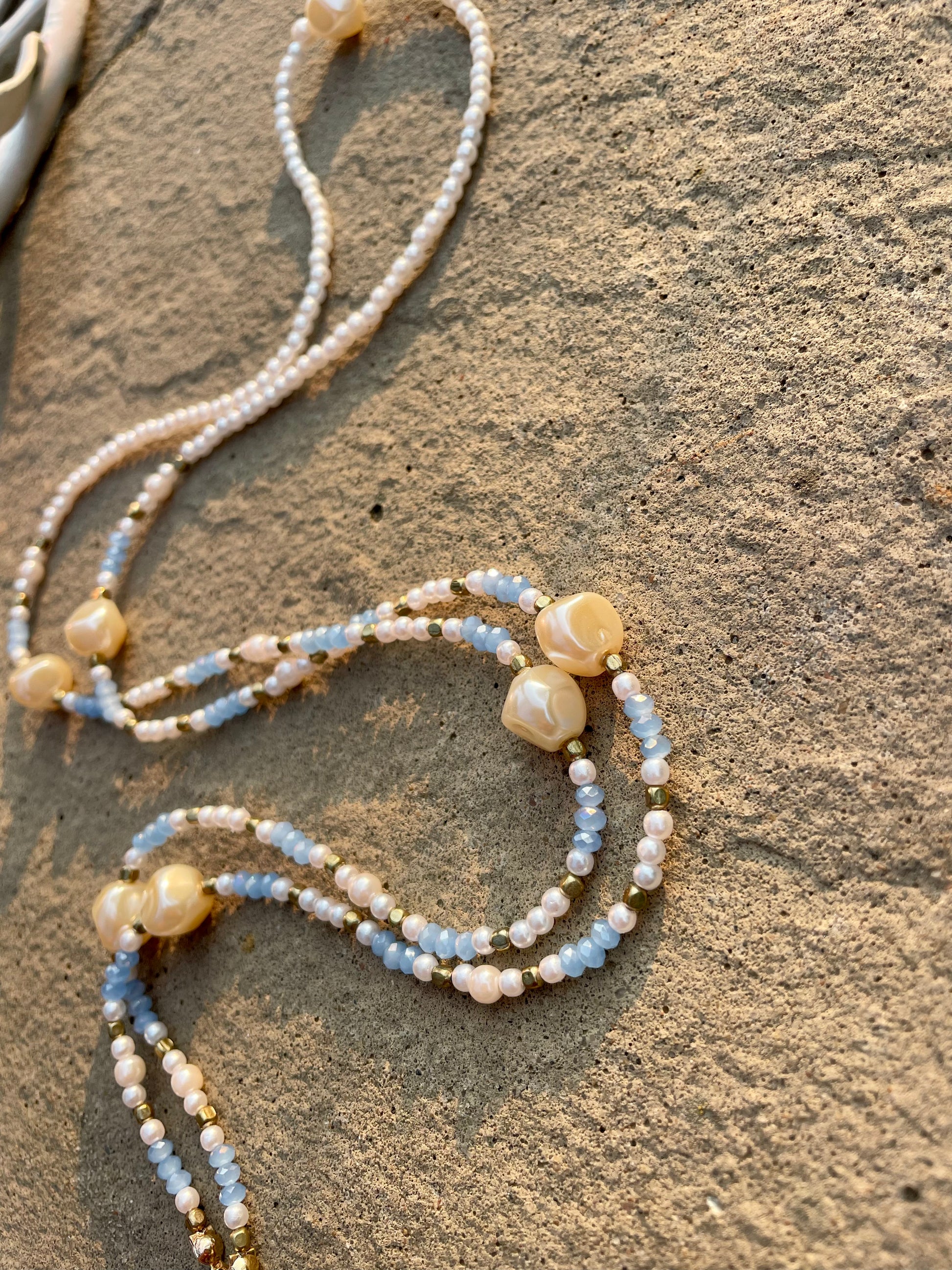 Designed and created by hand from beads and materials sourced from reclaimed jewelry, each Adaptable Accessory Chain is a one-of-a-kind work of art (just like you) and can be worn multiple ways to enhance any outfit, style, and occasion.
