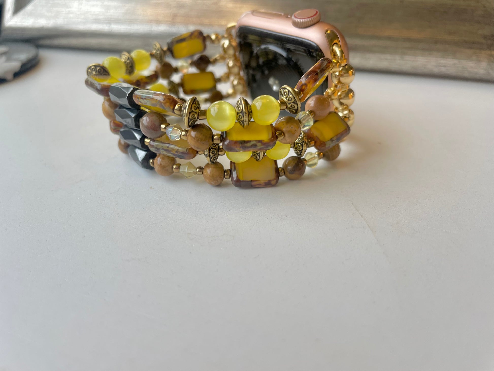 Be bold with one-of-a-kind Apple Watch style in the Time Is On My Side Beaded Apple Watch Band. Upcycled from thrifted beaded jewelry, this handcrafted 4-layer watch band adds a funky and vibrant touch to your wrist. And thanks to its elasticized design, it's easy to take on and off and provides a secure fit with each wear, making it a true convenience! Make a statement and stand out while still being able to utilize your device.