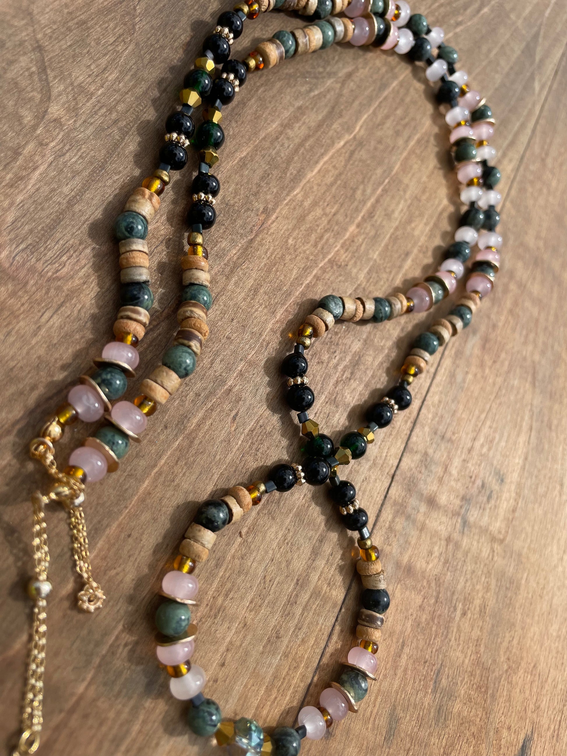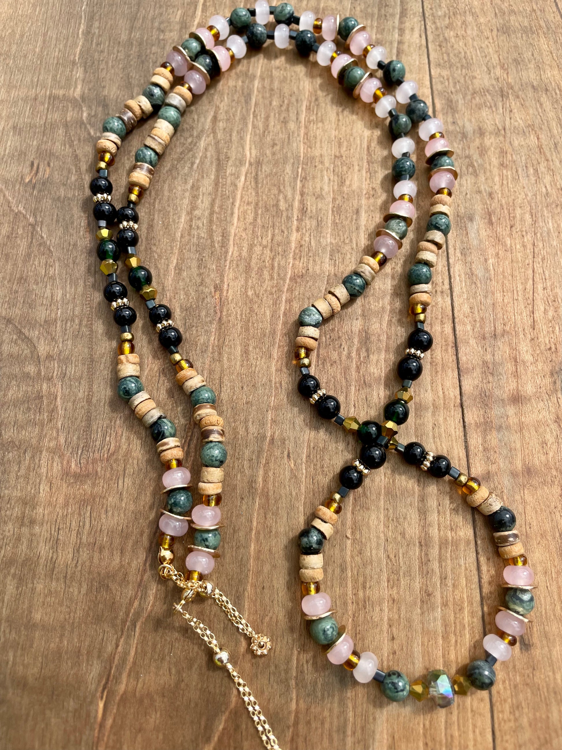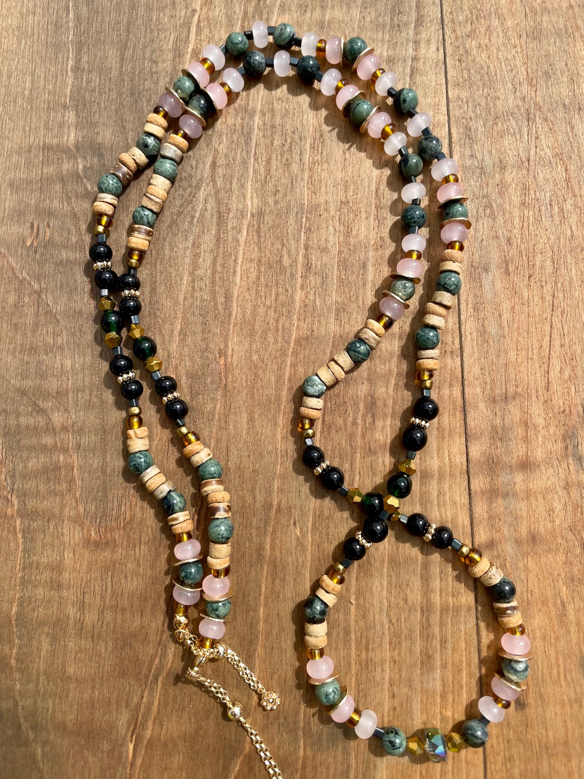 Designed and created by hand from beads and materials sourced from reclaimed jewelry, each Adaptable Accessory Chain is a one-of-a-kind work of art (just like you) and can be worn multiple ways to enhance any outfit, style, and occasion.
