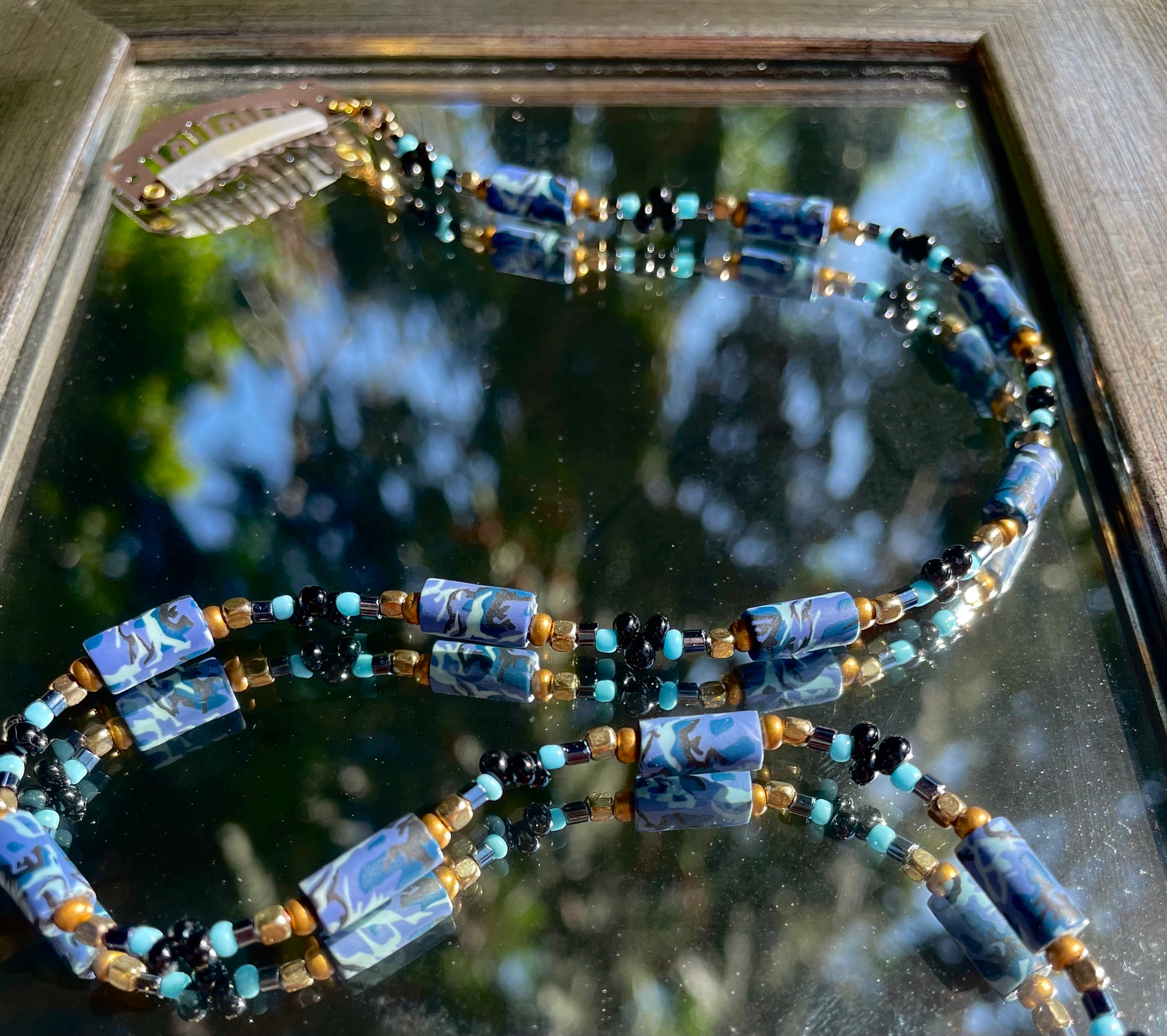 Make a bold statement with the Undercover Agent Hair Chain! Like all CHAiNGE pieces, it's crafted with beads from reclaimed jewelry, but still a one-of-a-kind beaded pattern and making it a unique statement piece. Secure this beautiful single strand hair chain to your hair using the hidden comb clip and dare to stand out with the Undercover Agent Hair Chain!