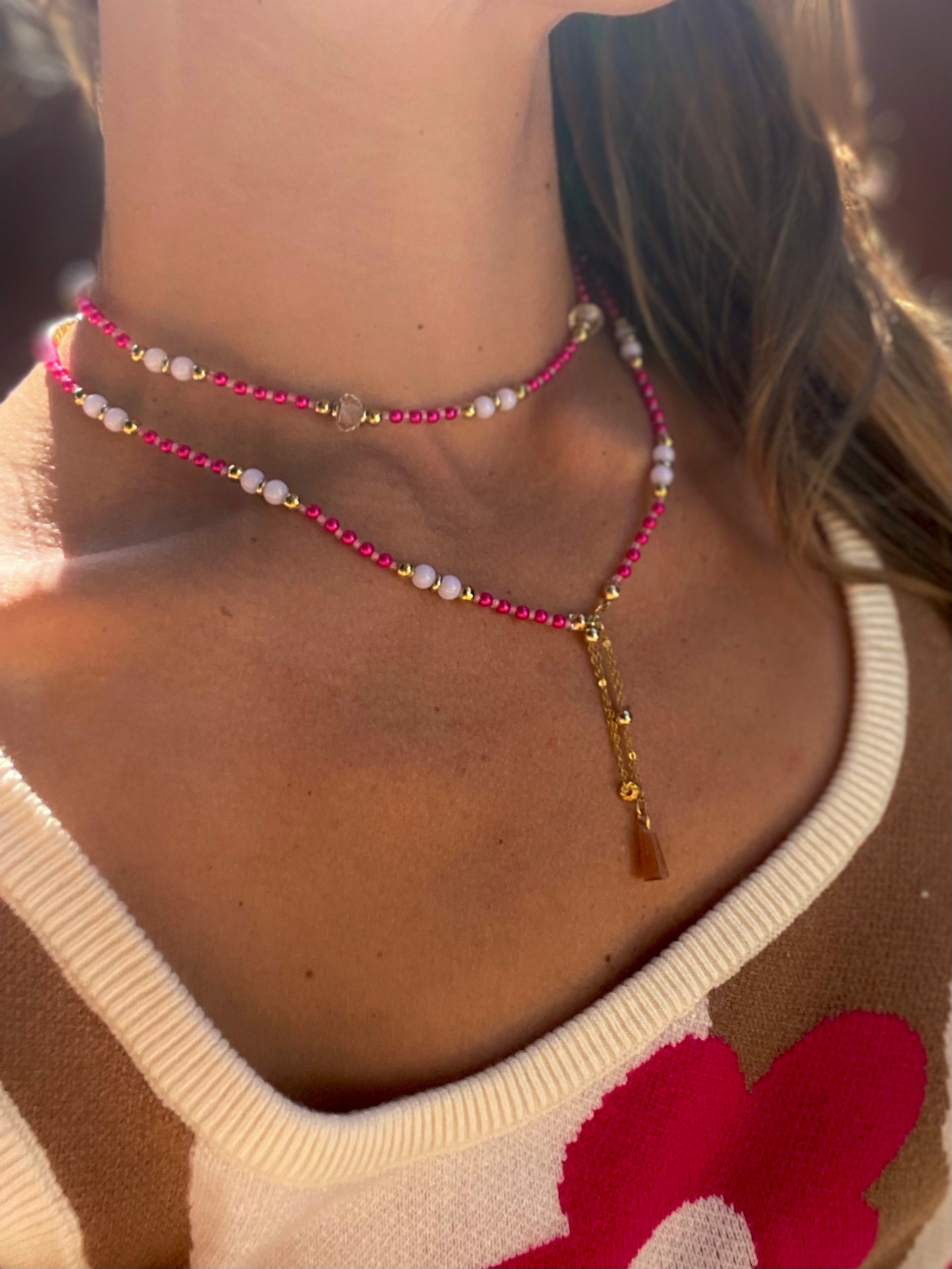 Wear it as a lariat necklace, layered choker necklace, wrap bracelet, sunglasses chain, body chain, or arm cuff. With its gold filled chain loops, you get to set the fit and style!